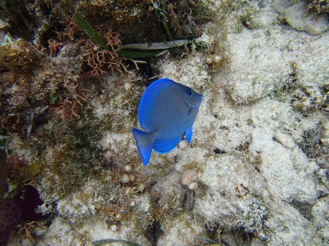 El arrecife es la Barrera de Coral Maya , la segunda barrera de coral más grande del mundo, sólo superada por la Gran Barrera de Coral de Australia. ¡¿Pero ese está a 40 km / 25 millas mar adentro hasta el arrecife en el punto más cercano y, trágicamente, actualmente medio muerto?! La Barrera de Coral Maya todavía está bastante prístina, especialmente aquí.